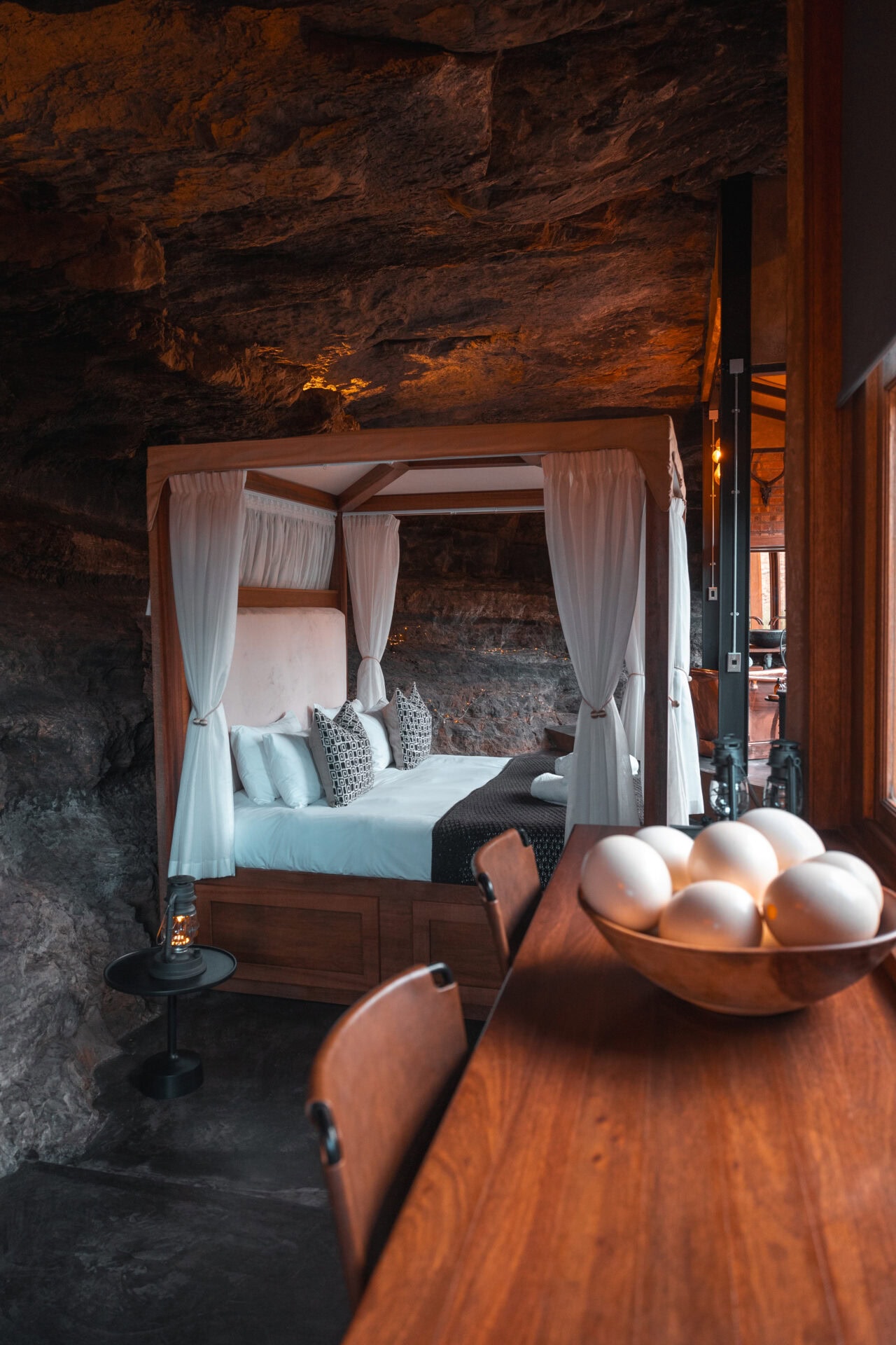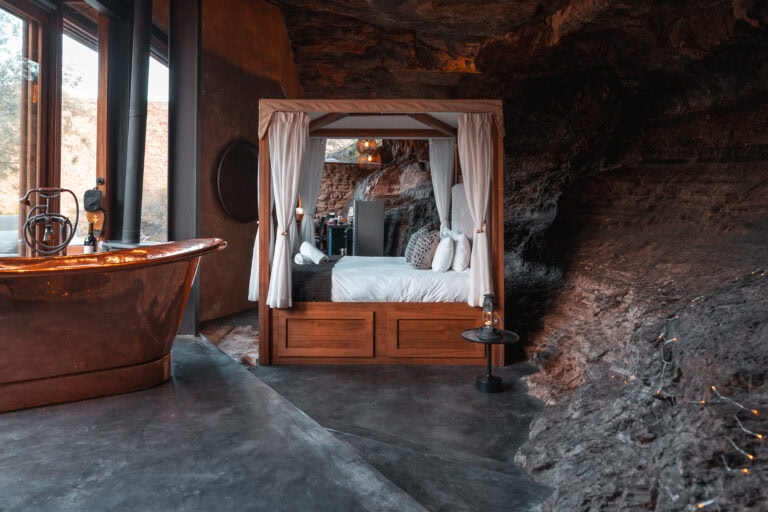 Ever dreamed of sleeping in a cave? Not the dark, damp kind… this is next-level luxury! Picture a four-poster bed, a gorgeous copper bathtub, a fully equipped kitchenette, and dreamy outdoor spaces made for stargazing, soaking and slow mornings.