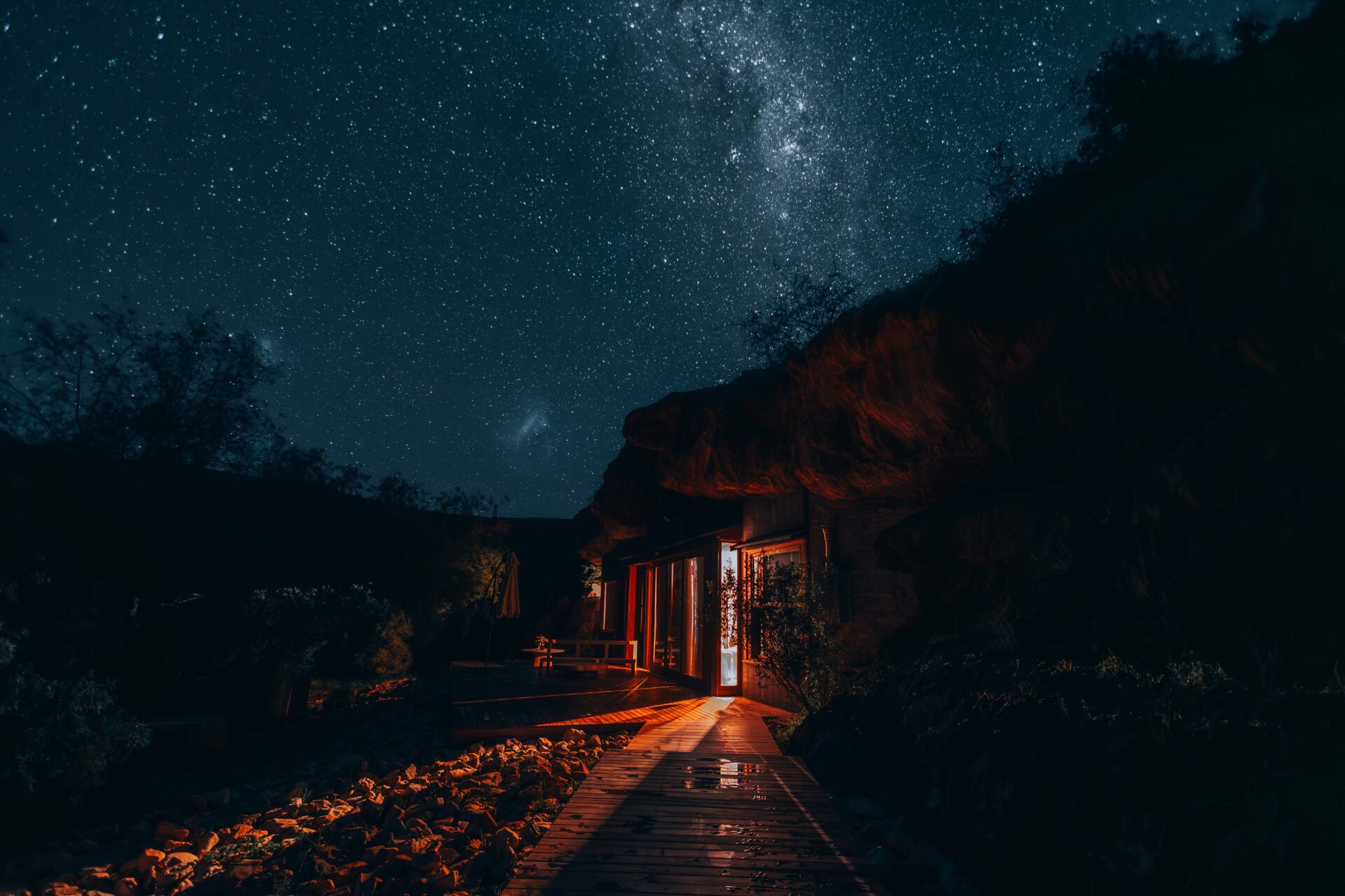 Carved into the mountains just outside Montagu (2.5 hours from Cape Town), The Cave House sleeps two and offers complete privacy. The natural rock formations of the cave are beautifully integrated into the design, creating a one-of-a-kind atmosphere both inside and out.