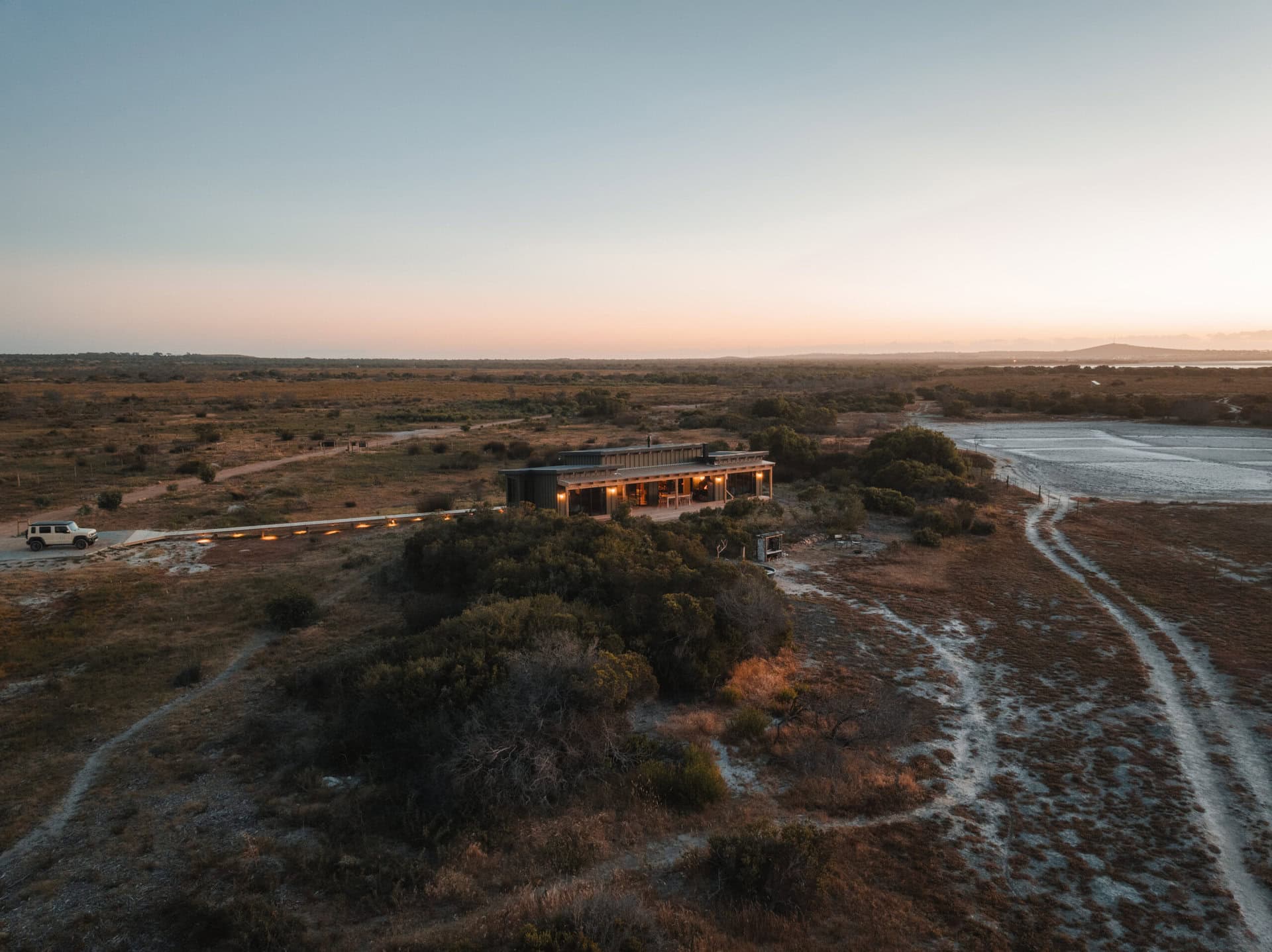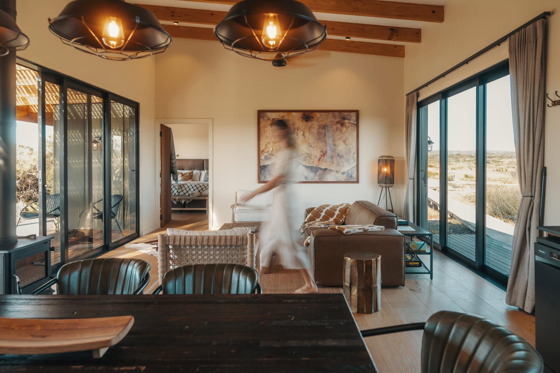 Just one hour from Cape Town, only 5 km from Yzerfontein beach and bordering the West Coast National Park, this stay perfectly blends retro charm with raw wilderness. Enjoy sundowners from the deck or hot tub while giraffe, zebra, and other animals roam across the reserve. Head out on a game drive, guided horseback safari, or experience the magic of flower season. It’s the kind of place where beach days, bush adventures, and slow evenings come together effortlessly.