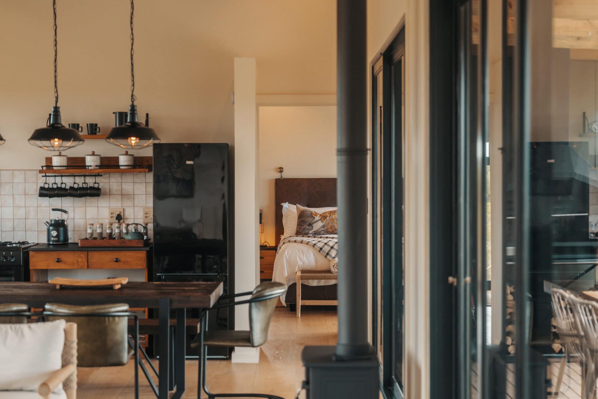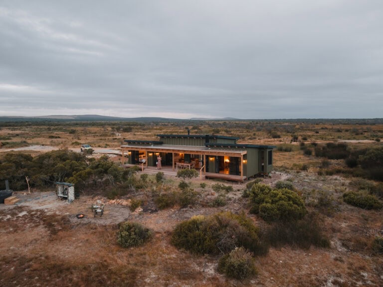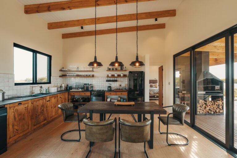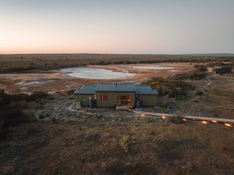 Just one hour from Cape Town, only 5 km from Yzerfontein beach and bordering the West Coast National Park, this stay perfectly blends retro charm with raw wilderness. Enjoy sundowners from the deck or hot tub while giraffe, zebra, and other animals roam across the reserve. Head out on a game drive, guided horseback safari, or experience the magic of flower season. It’s the kind of place where beach days, bush adventures, and slow evenings come together effortlessly.