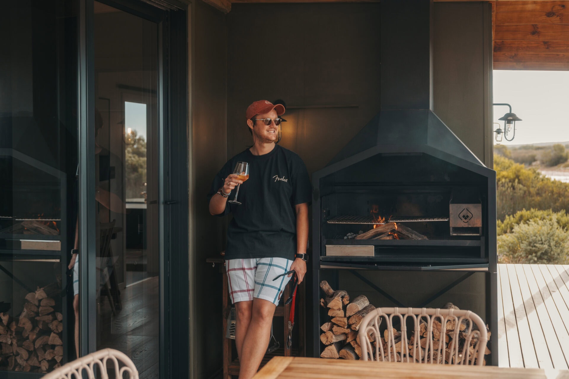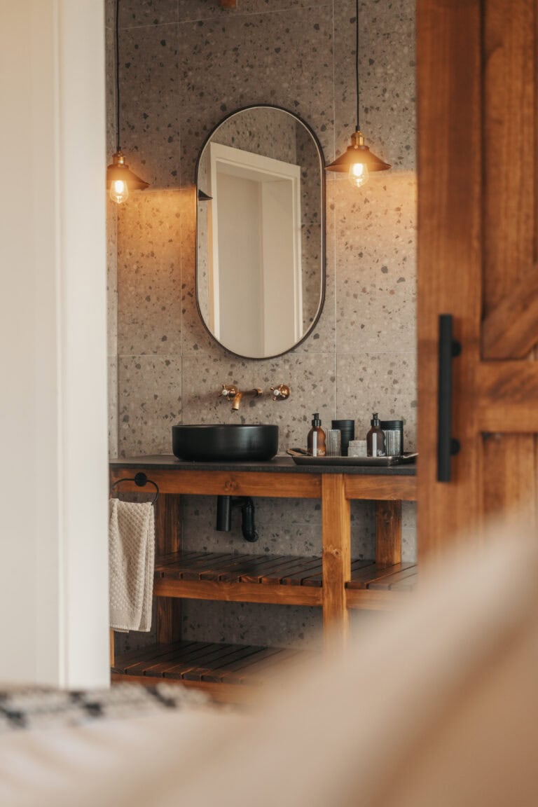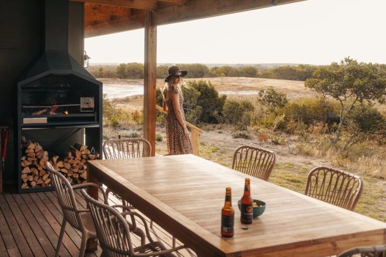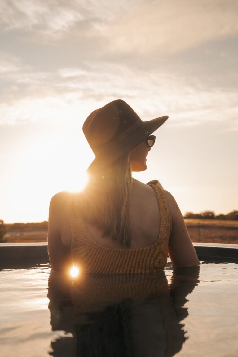 The layout of this cabin is ideal for a four-sleeper. It’s super spacious, with mirror-imaged bedrooms and bathrooms on either side of the cabin, and each bathroom has its own bath! We also loved all the thoughtful local touches throughout the space, especially the fynbos tea tasting. But the real highlight for us was enjoying sundowners around the fire pit while buck and giraffe wandered across the salt pans – it really felt like we were back in the bush!