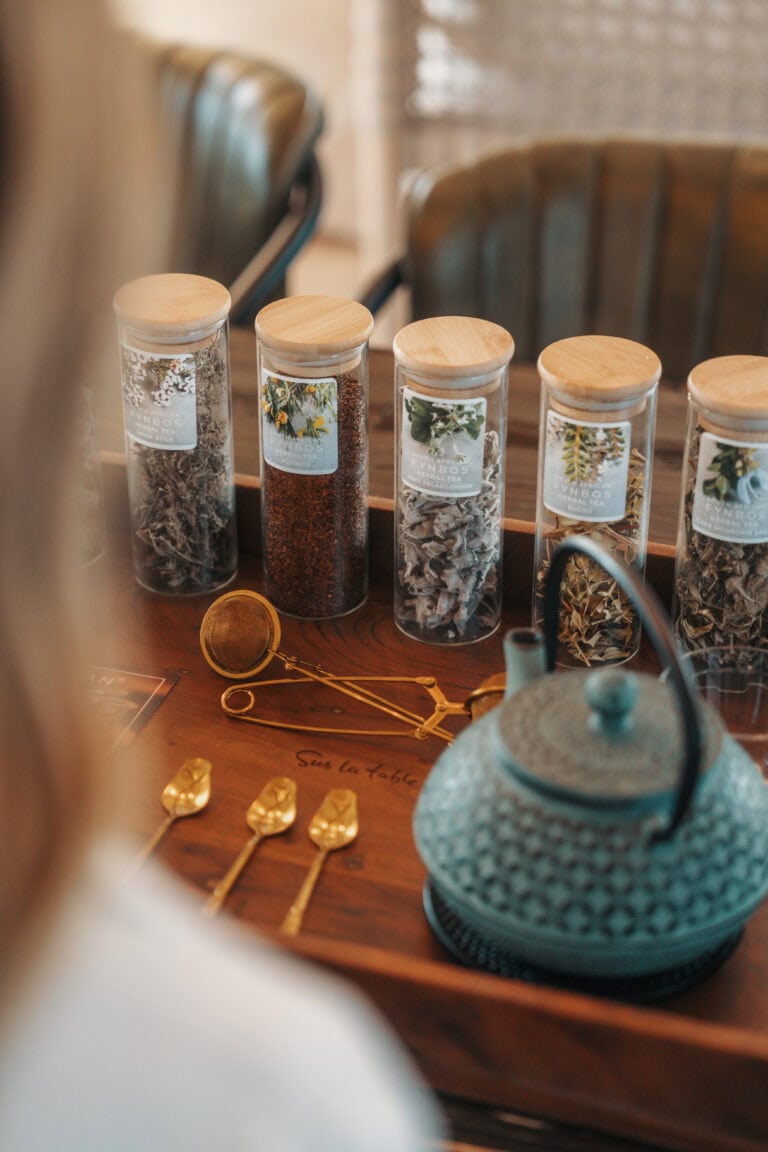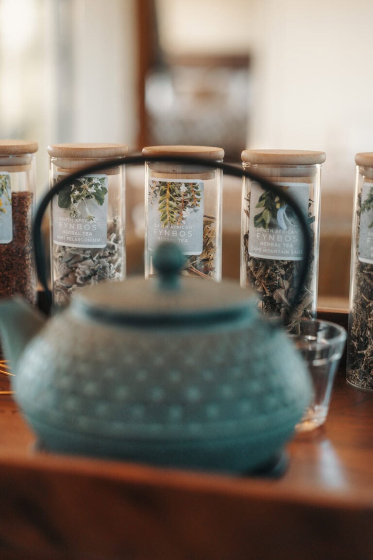 There’s a fully equipped kitchen with a gas oven and hob, fridge-freezer, dishwasher and toaster. Instant coffee, tea, sugar, olive oil, vinegar, and salt & pepper are provided. They also leave you with a selection of loose leaf teas to try and a range of fynbos herbs. There is a french press so bring your own filter coffee.
