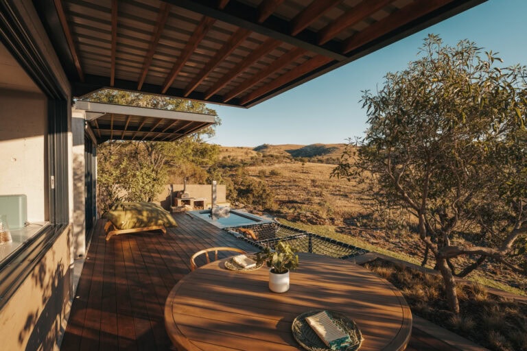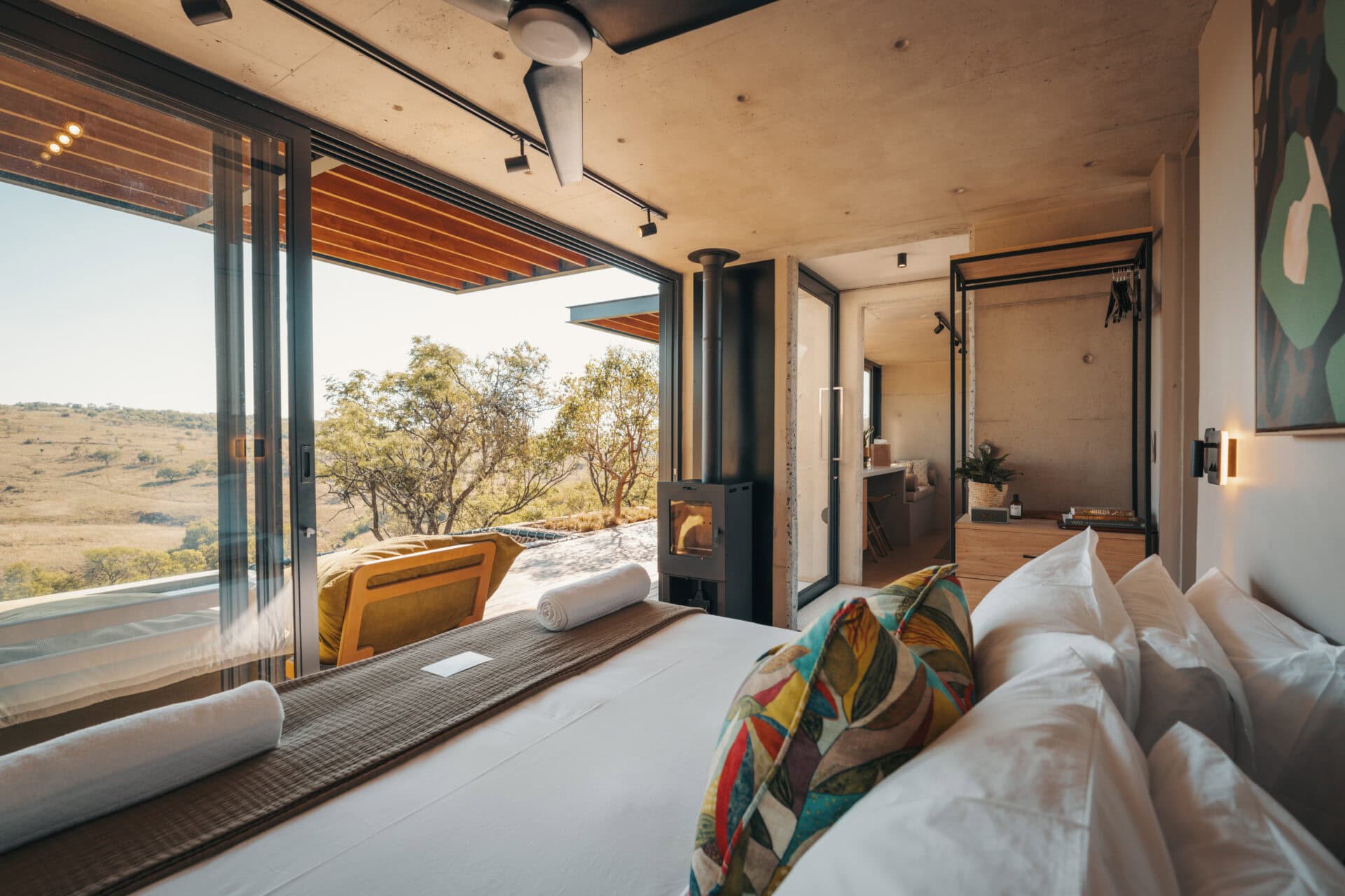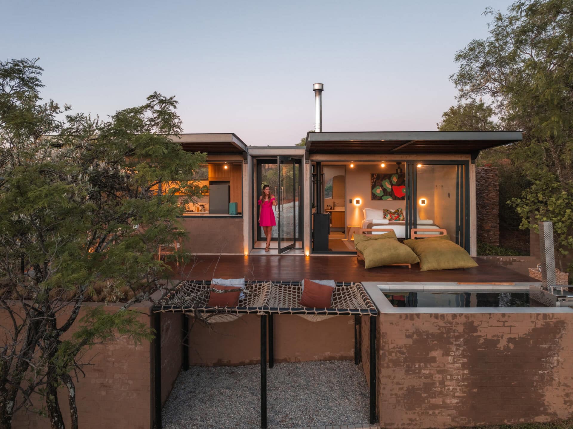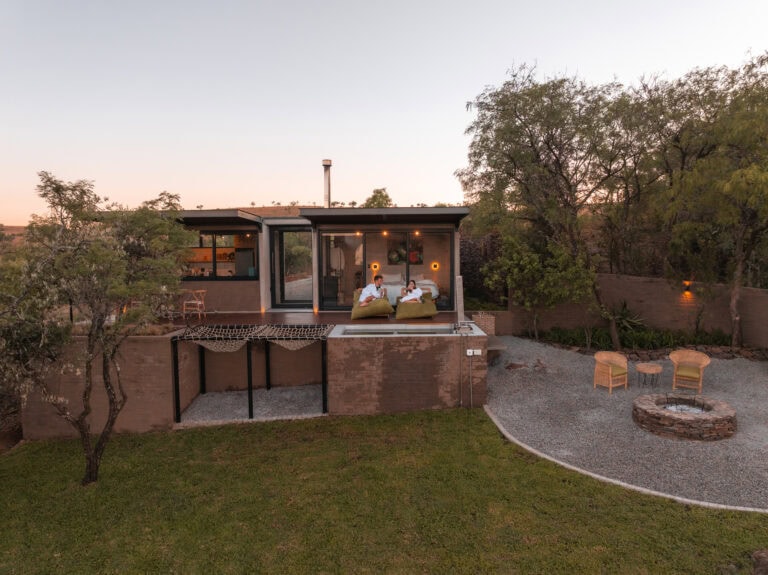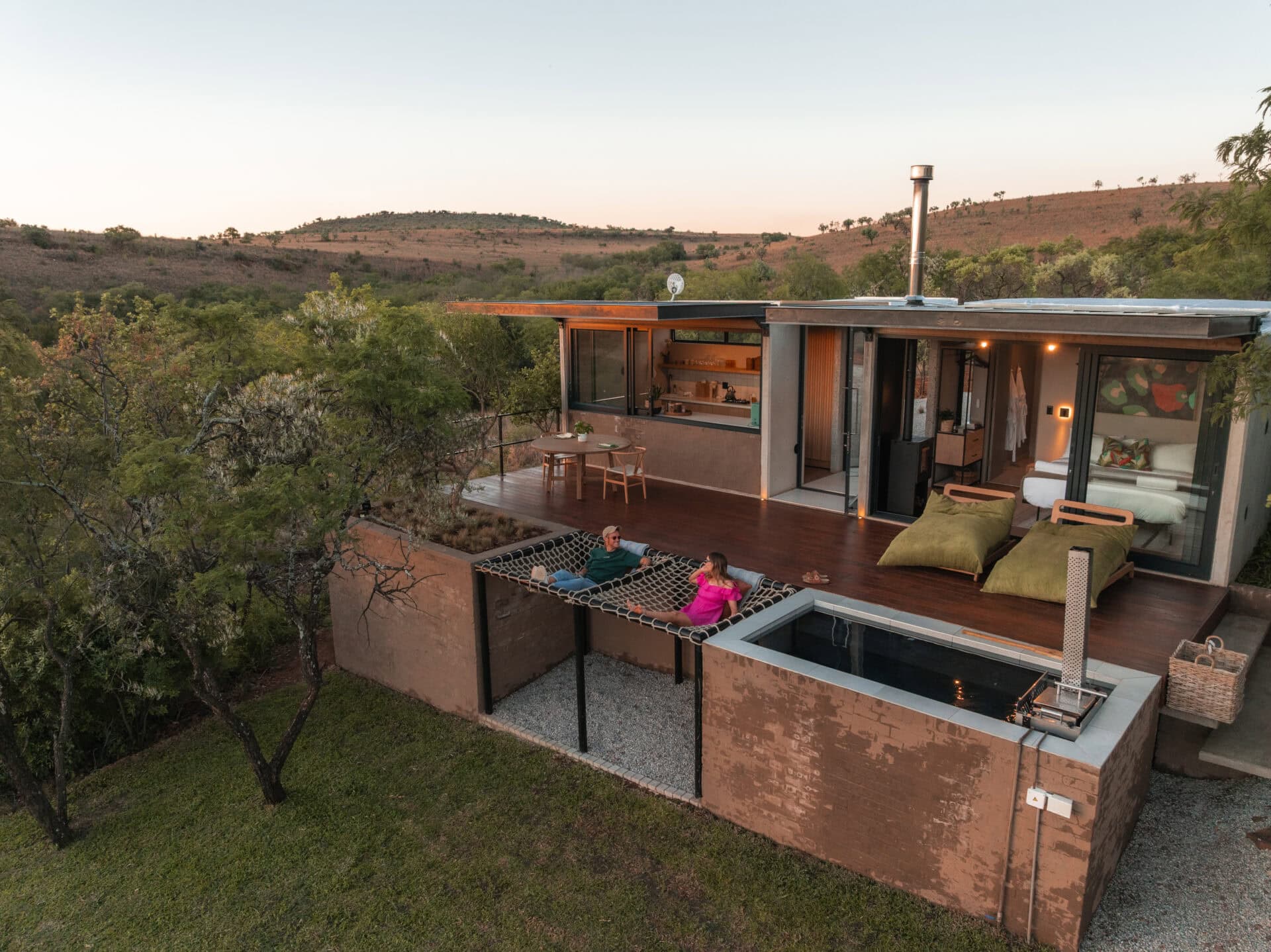 Just an hour from Johannesburg, this is one of those places that feels worlds away yet so easy to reach! The Valley Pods take everything we loved about the original Mountain Pods and turn it up a notch on the luxury scale – with sleek design, more spacious interiors, thoughtful details, and those signature views that stretch for miles. Spend your days chilling on the cargo nets or beanbag loungers, soaking in the hot tub, or curling up around the fire pit under a sky full of stars.