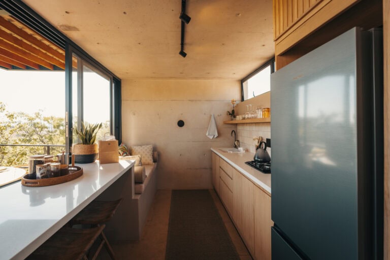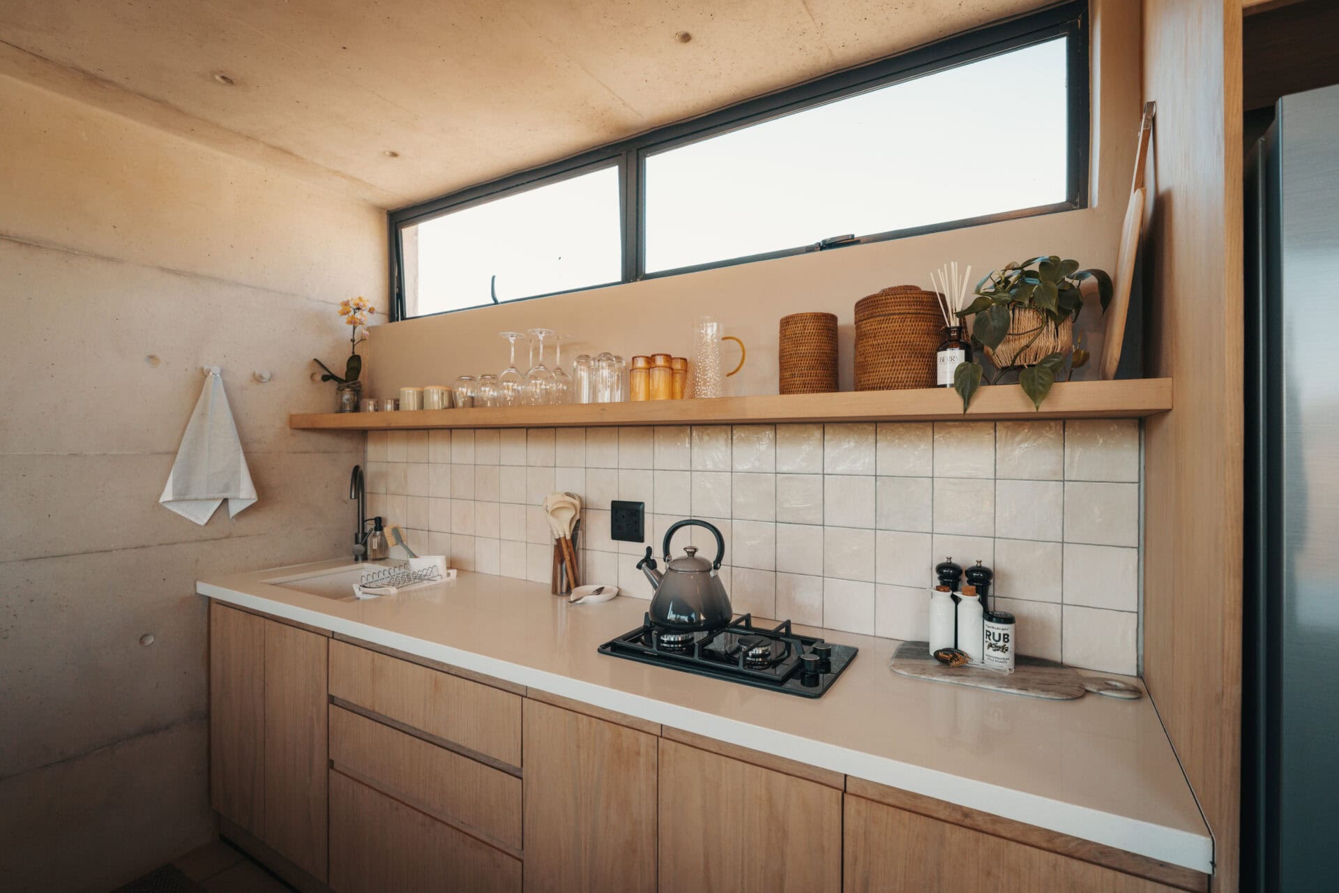 The space has been designed for outdoor living, but if the weather isn’t great, you can dine at the kitchen countertop or curl up on the window seat with a good book in hand.