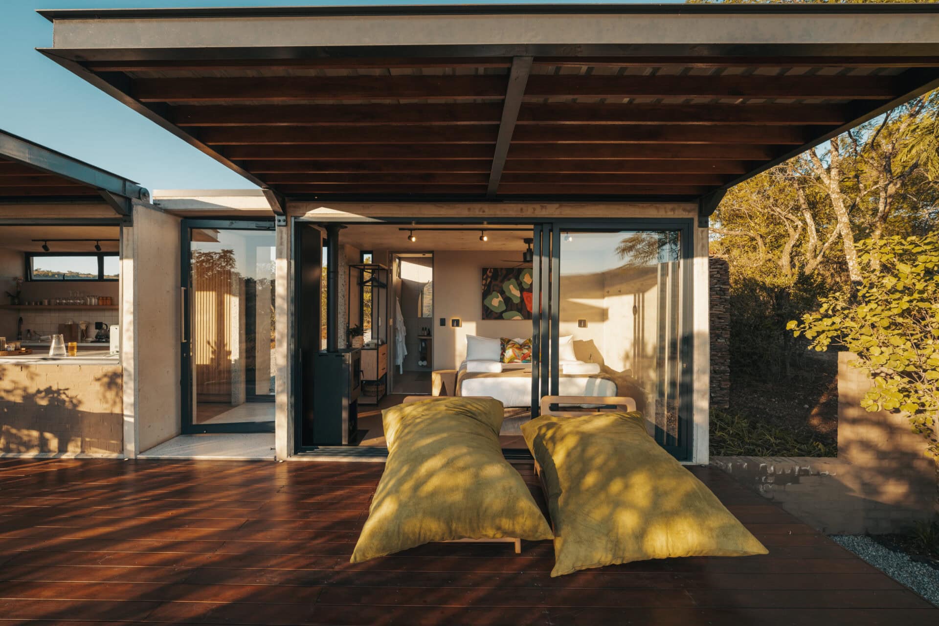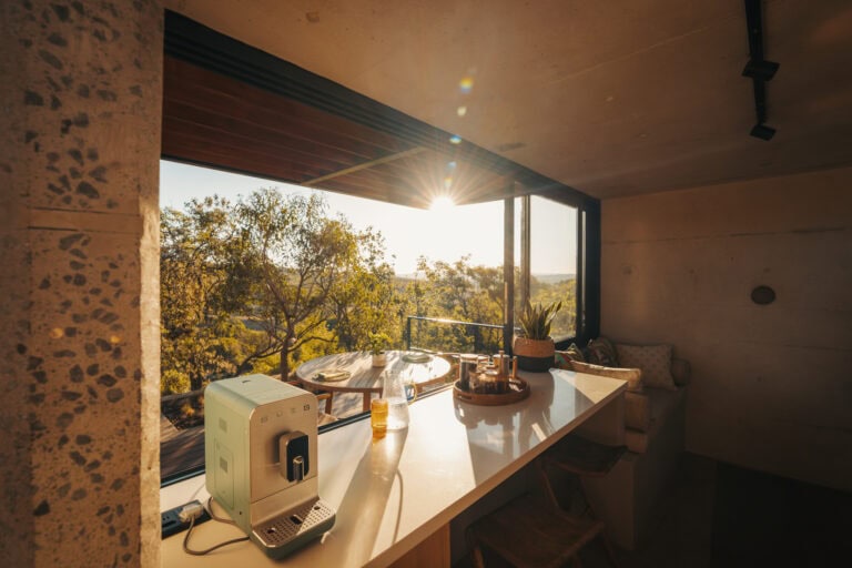 We especially loved the location of Valley Pod Two as it’s right on the end which makes it super private, and the setting over the cliff is absolutely spectacular! It’s so peaceful and relaxing, and the birdlife is incredible. It also feels super safe with an electric fence around the perimeter and 24/7 security. The small touches are next level, they’ve really thought of everything but our favourite spot to chill had to be on those beanbag sun loungers – we didn’t want to get off!