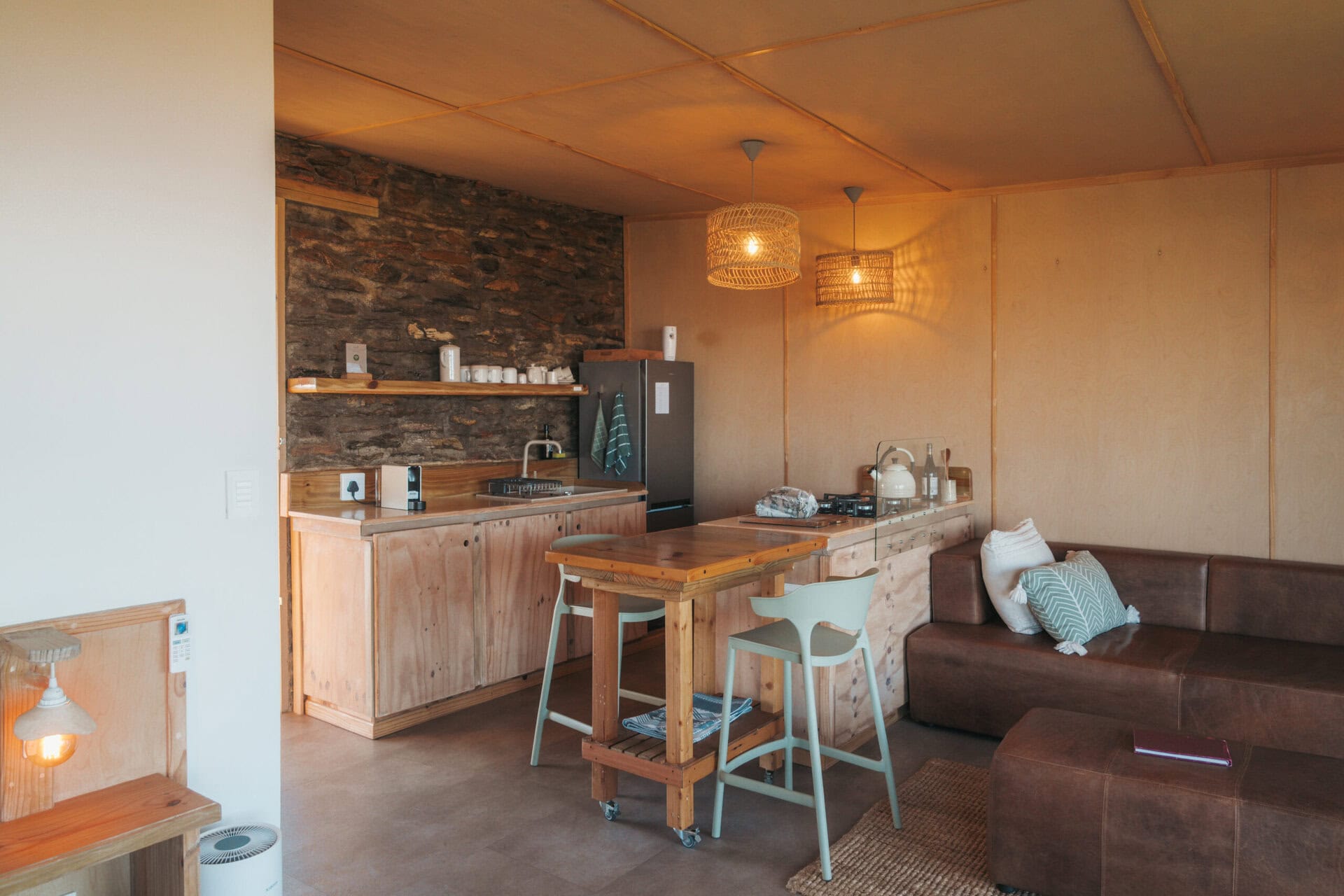 There’s a fully equipped kitchenette with a gas hob, whistling kettle, Nespresso machine, microwave, toaster, and fridge-freezer. Instant coffee, filter coffee, coffee pods, tea, sugar, 250ml of milk, olive oil, salt and pepper, and braai seasoning are provided. There’s also an honesty bar with snacks and drinks in case you get hungry.