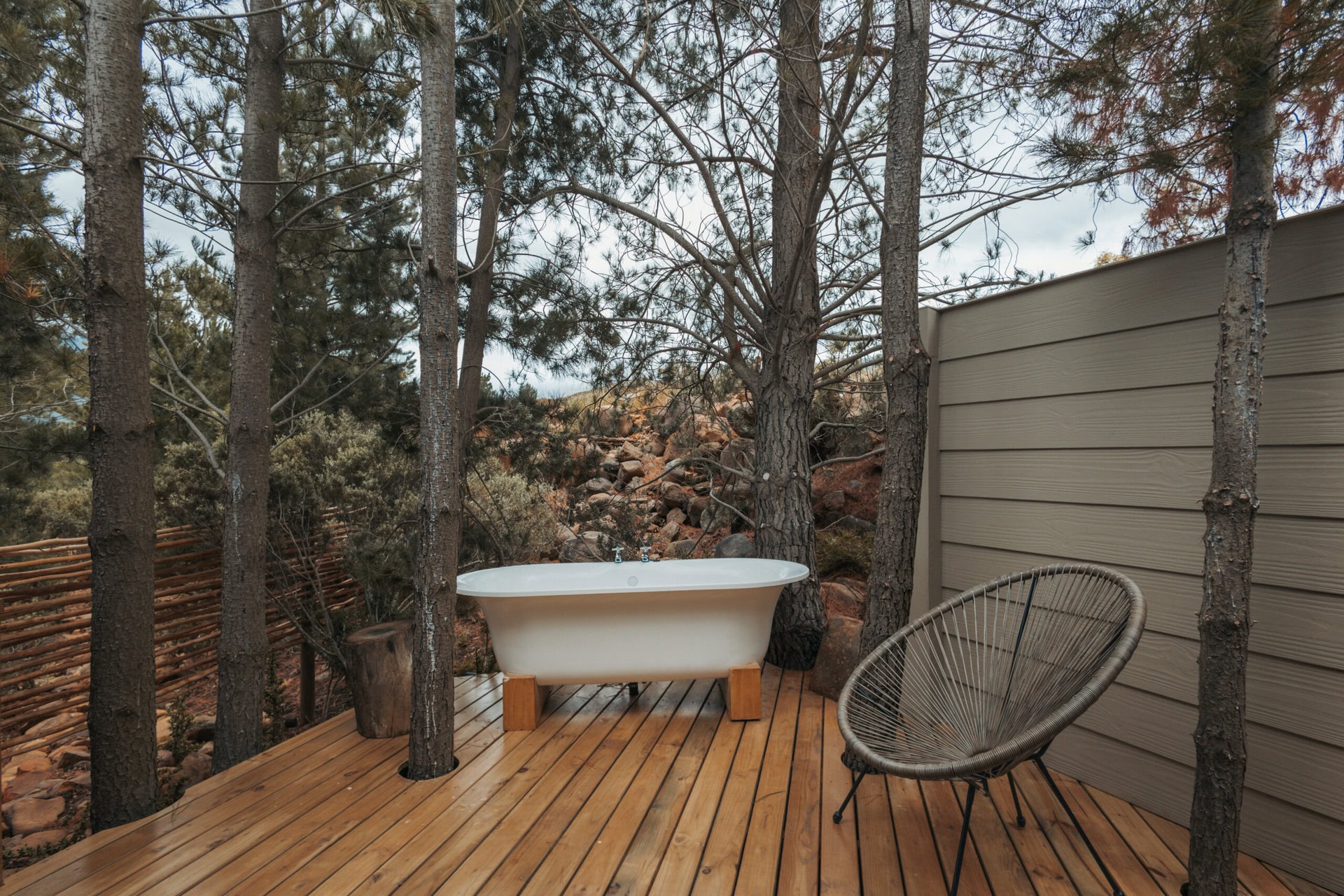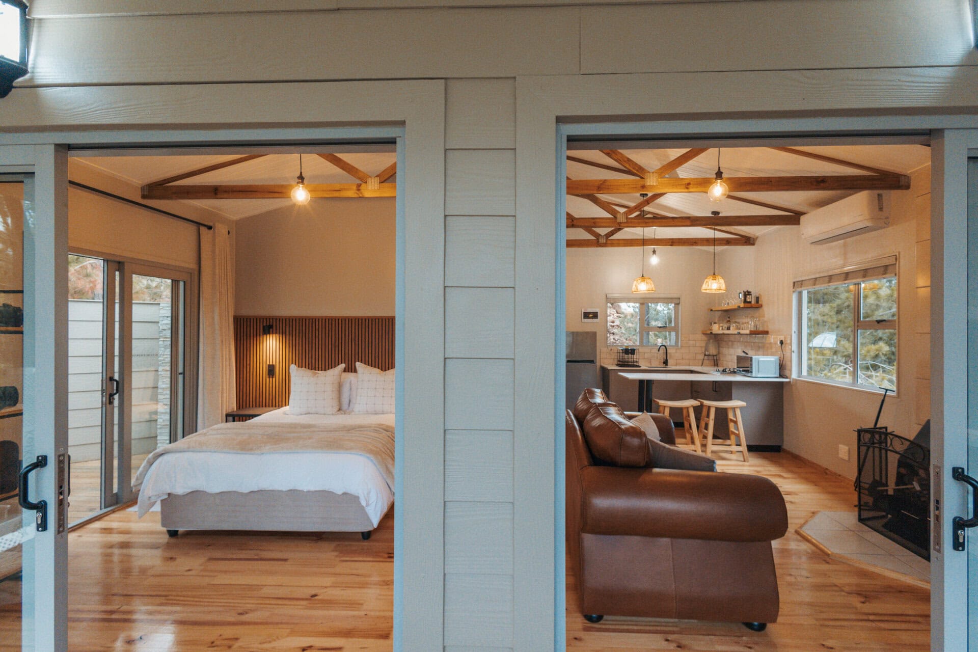 Outside, you’ll find all the outdoor amenities you could wish for, including a wood-fired hot tub, cargo nets, pizza oven, braai, and both an outdoor bath and shower. And all the fires are pre-built and ready for you to light with a lollipop firelighter.